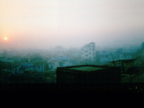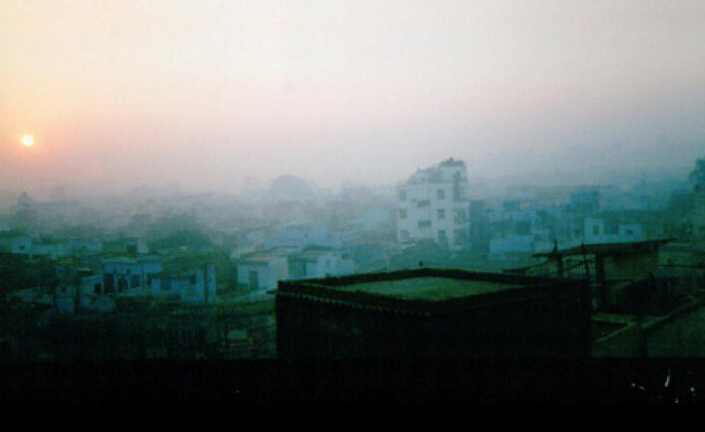 Sunrise over Delhi through a haze of pollution, much of it from burning fossil fuels