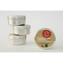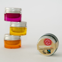 Lip Balms: Our organic lip balms consist of sunflower oil, Fairtrade certified olive oil from Palestine, Fairtrade certified shea butter from Ghana, candelilla wax, vitamin E (as a natural preservative) and lightly flavoured with essential oils. These come in four varieties in beautifully coloured, glossy glass jars (5 ml) with chrome tops and tamper resistant labels. |