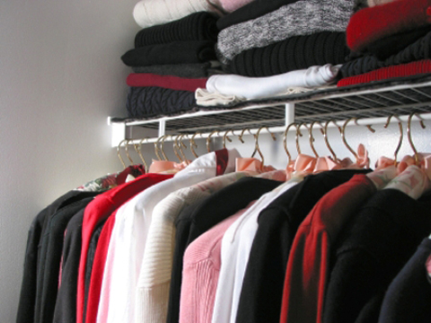 • Restock your wardrobe with the pieces you wear in item order: i.e. tops, jeans, suits, dresses, skirts, shorts etc. Put the items you wear most to the front and centre.