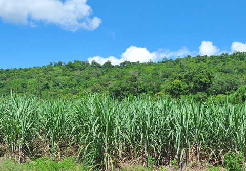 Image of sugar cane encroaching on rainforest courtesy of www.shutterstock.com