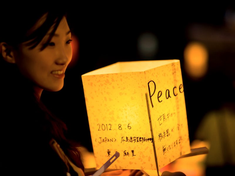A young woman participates in Hiroshima's lantern floating ceremony on the Motoyasu River that runs below the Atomic Bomb Dome, 6th August 2012. Photo: Freedom II Andres via Flickr (CC BY).