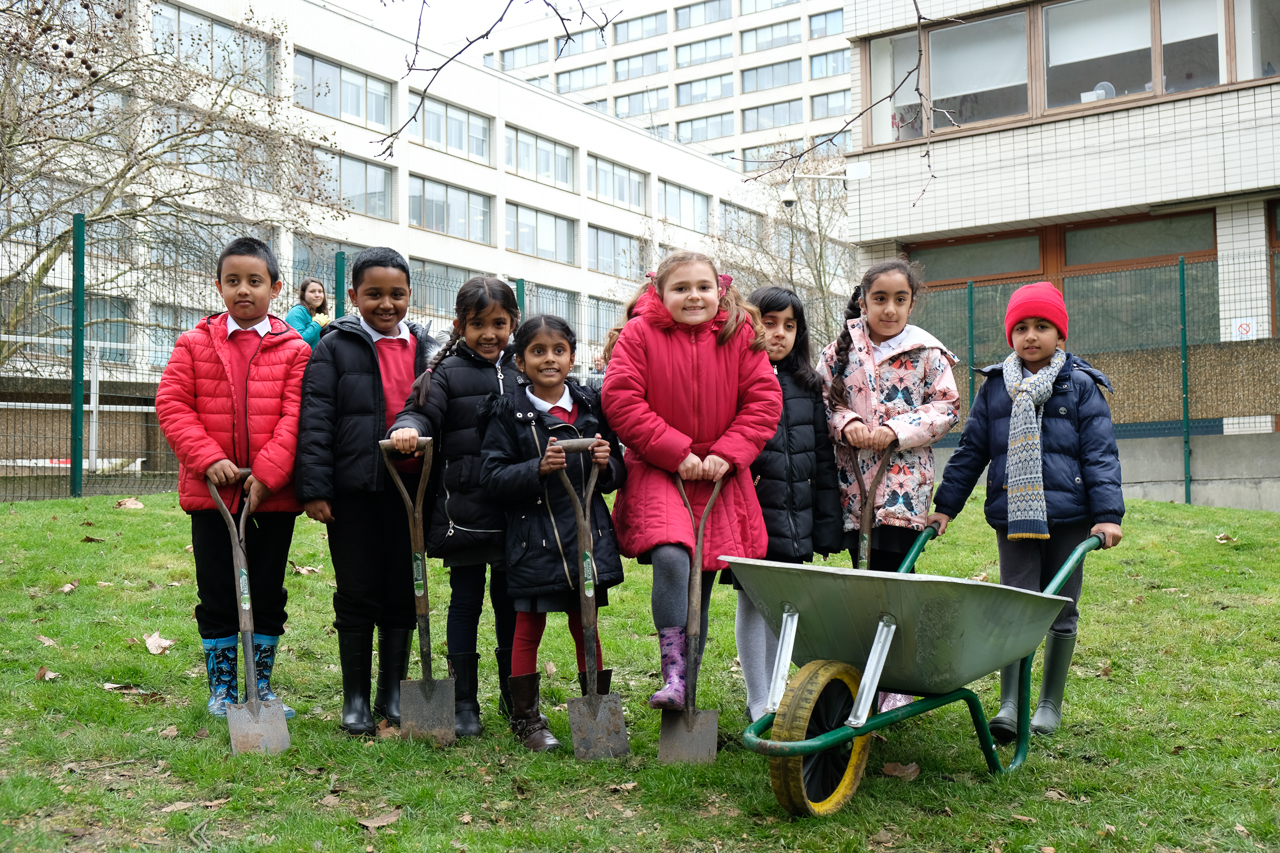 Straight after it was planted, we got onto the millionth and first. One generation passed the baton to another, with pupils from Dormers Wells Infant School planting the first of a new breed of urban trees in the hospital playground.