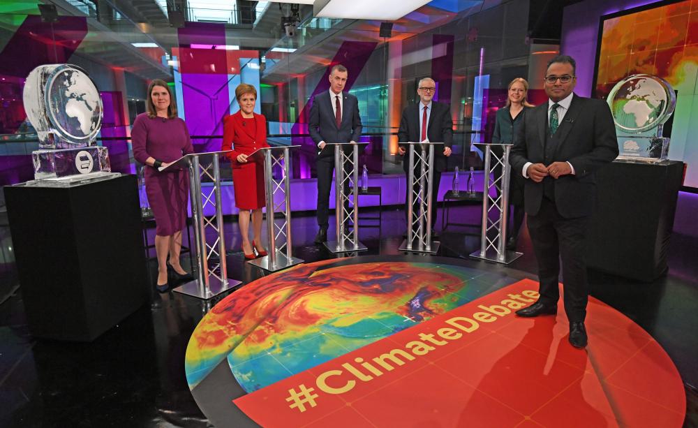 Labour leader Jeremy Corbyn, Liberal Democrat leader Jo Swinson, Scottish First Minister and SNP leader Nicola Sturgeon, Plaid Cymru's leader Adam Price and Green co-leader Sian Berry debated the level of ambition for cutting emissions to net zero.