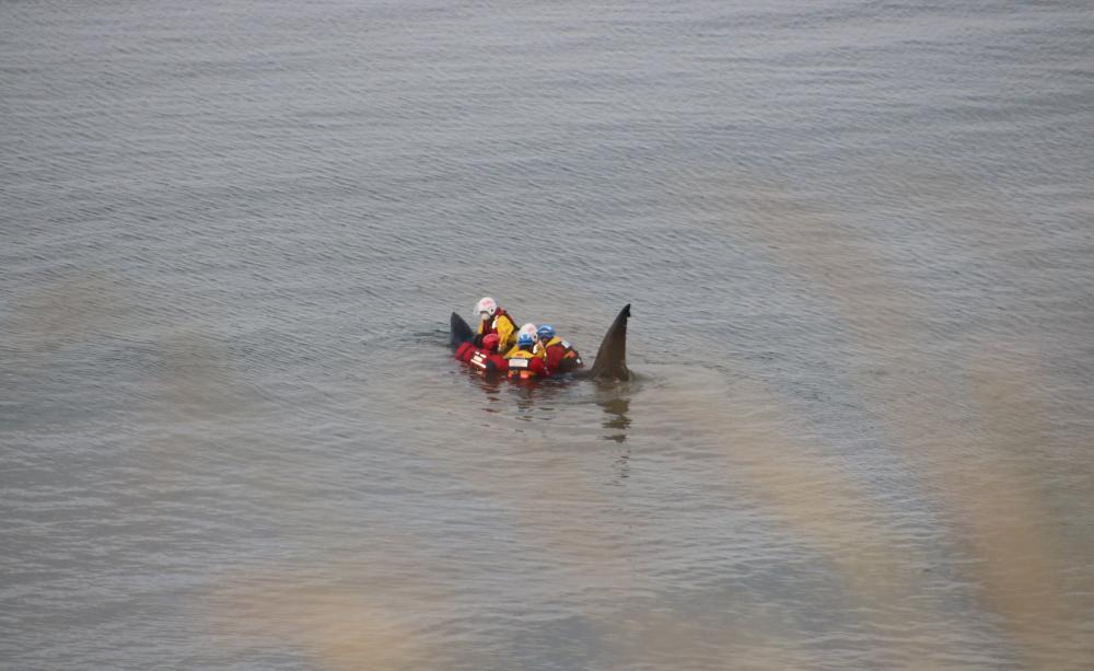 "Unfortunately, the shark appeared to be struggling as it was listing consistently over to its right-hand side and circling in the shallows, sometimes needing support from the rescuers.