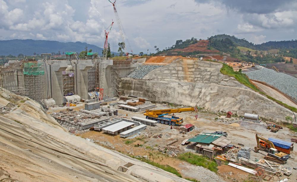 Dam under construction on Tembat River of Terengganu State, Malaysia.