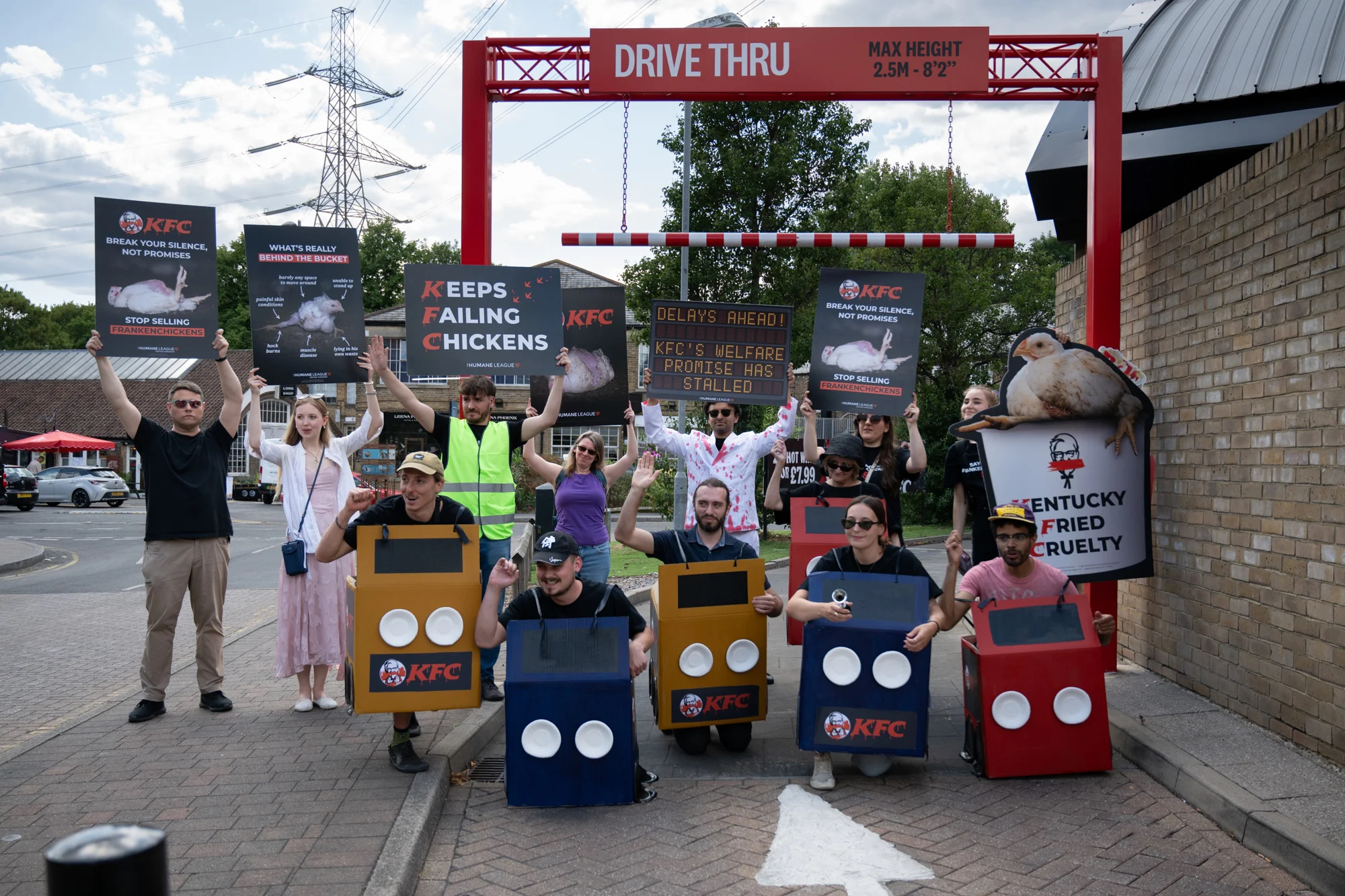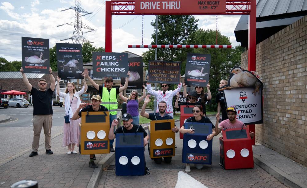KFC’s animal welfare report has been met with a new wave of protests, with The Humane League UK targeting KFC franchises across the country.