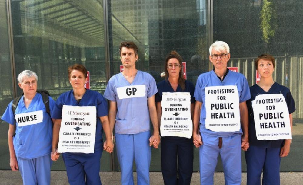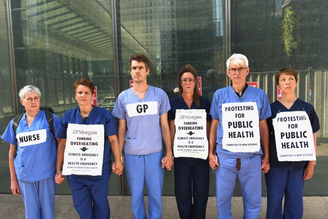 This has been signalled by the outcome of the trial this month of the JP Morgan Six – six healthcare professionals, all members of Health for XR, who, like the JP Morgan five before them, had also broken glass at JP Morgan’s headquarters.